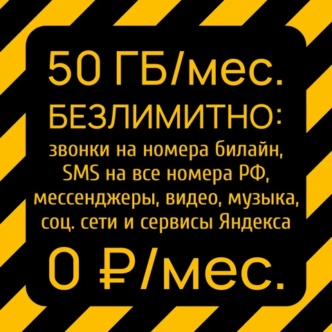 - Безлимит на: мессенджеры, видео (без VPN), социальные сети, музыку и сервисы Яндекса.