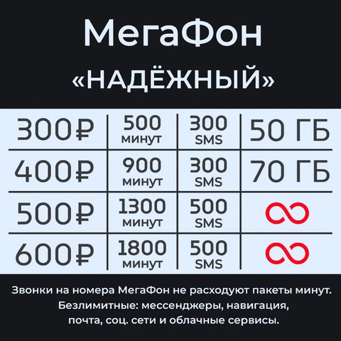 Линейка тарифных планов «НАДЁЖНЫЙ» на действующий номер МегаФон!