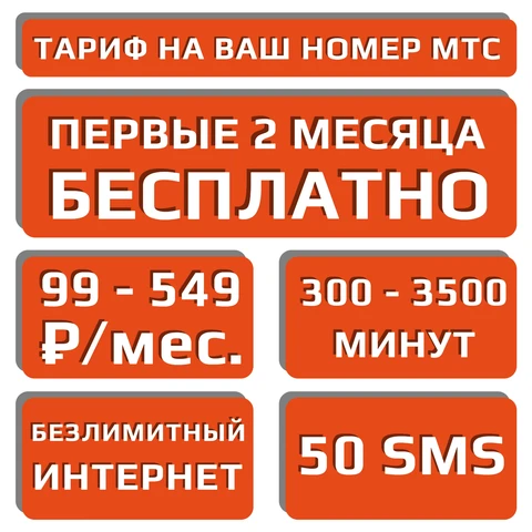 Опция безлимитных вызовов на номера МТС, в 1-ый месяц - 60 ₽/мес., со 2-го мес. - 39 ₽/мес.